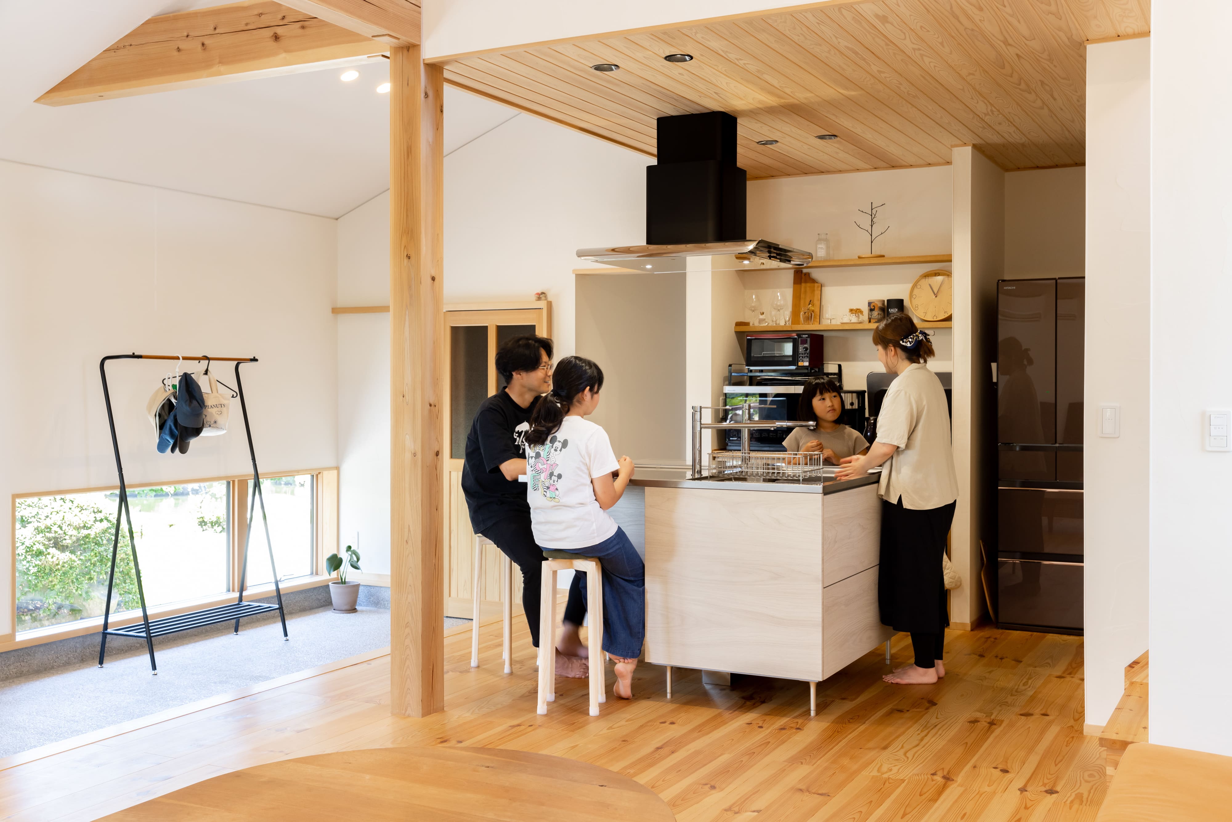 そこで、キッチンカウンター一体タイプを採用し、朝食やおやつ、お茶の時間はキッチンカウンターで過ごすようにしています。