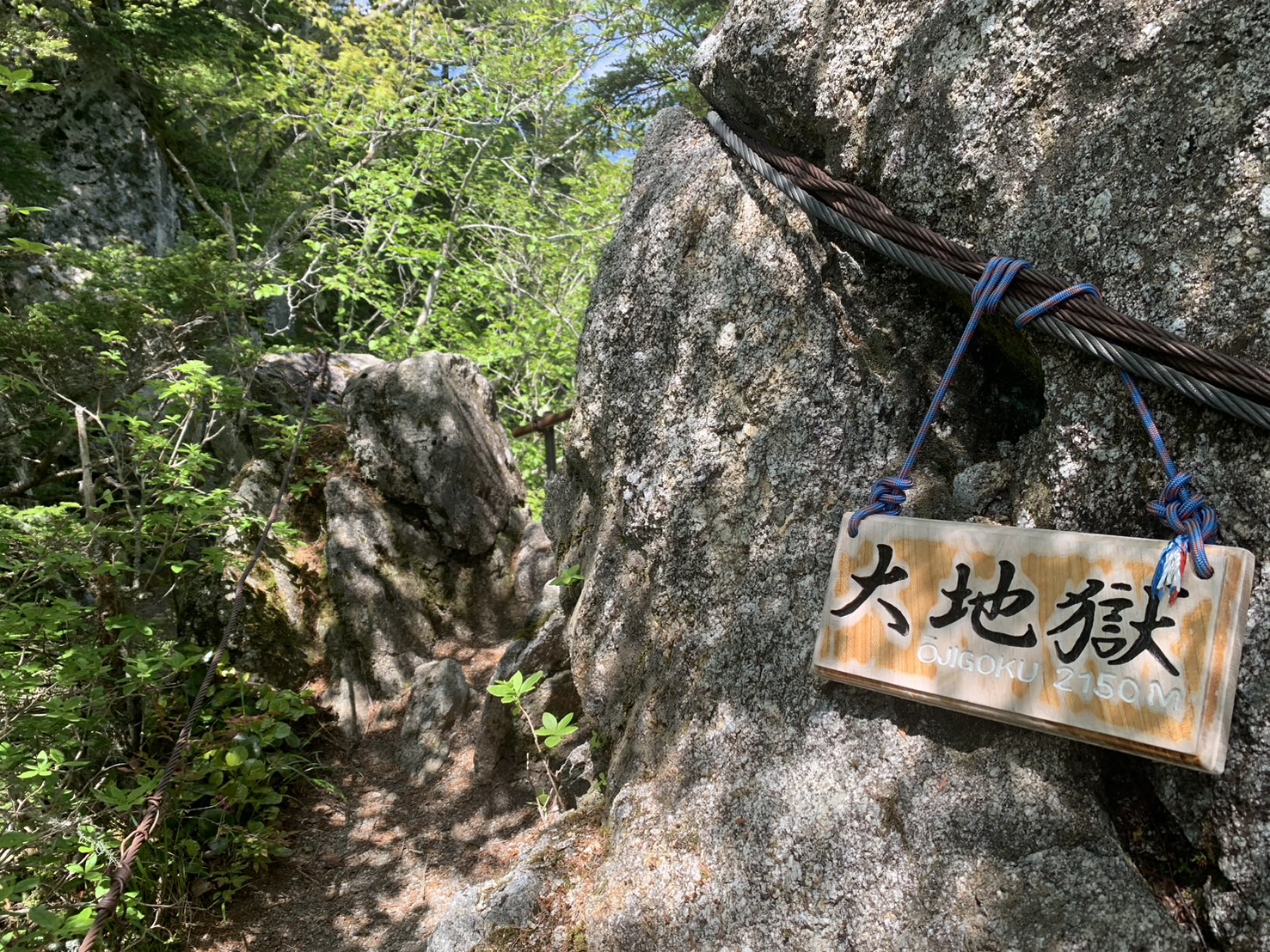 マセナギを過ぎると傾斜がきつくなり、階段も出てきます。大地獄、小地獄という痩せ尾根も通過するので、慎重に。