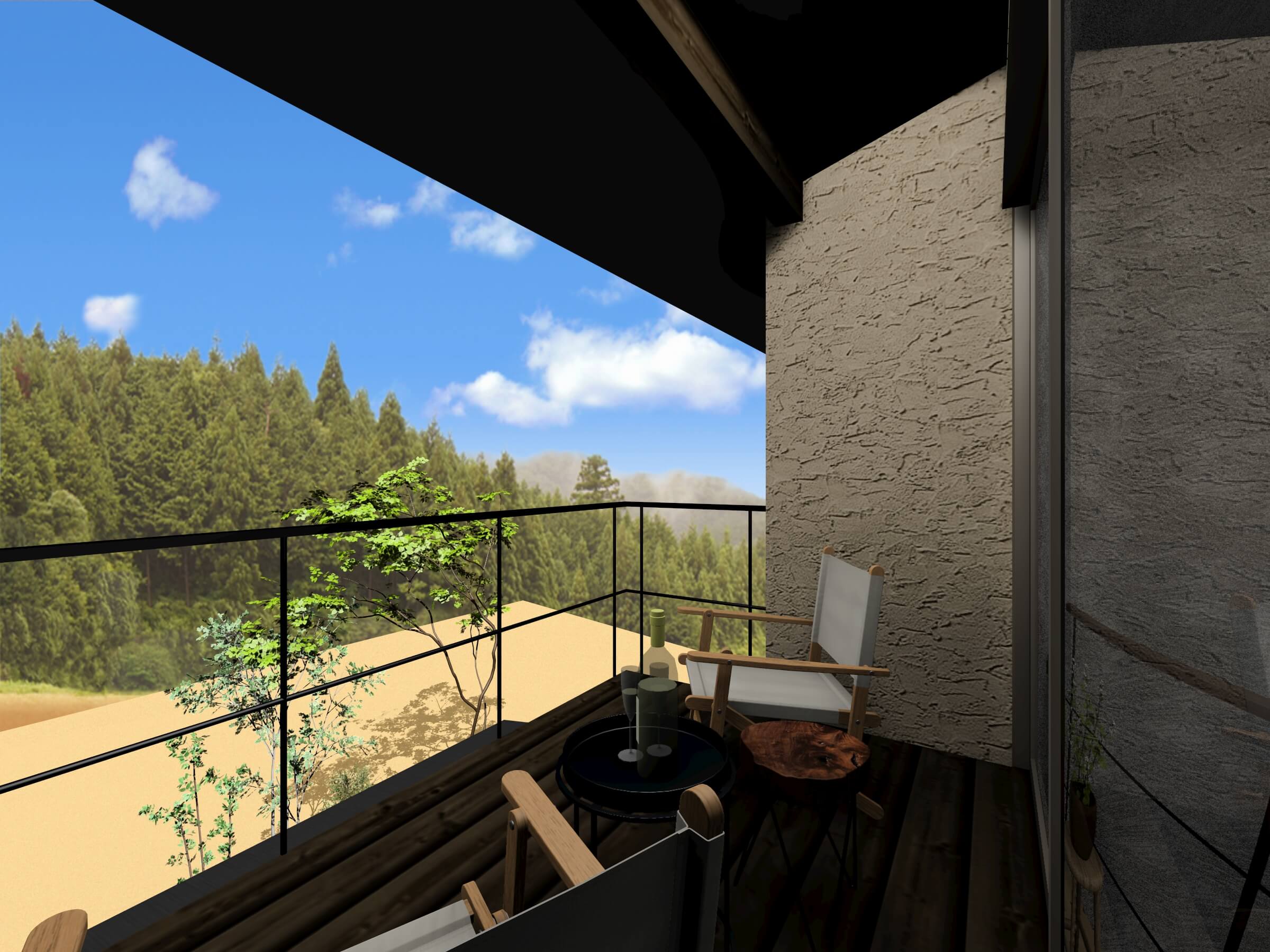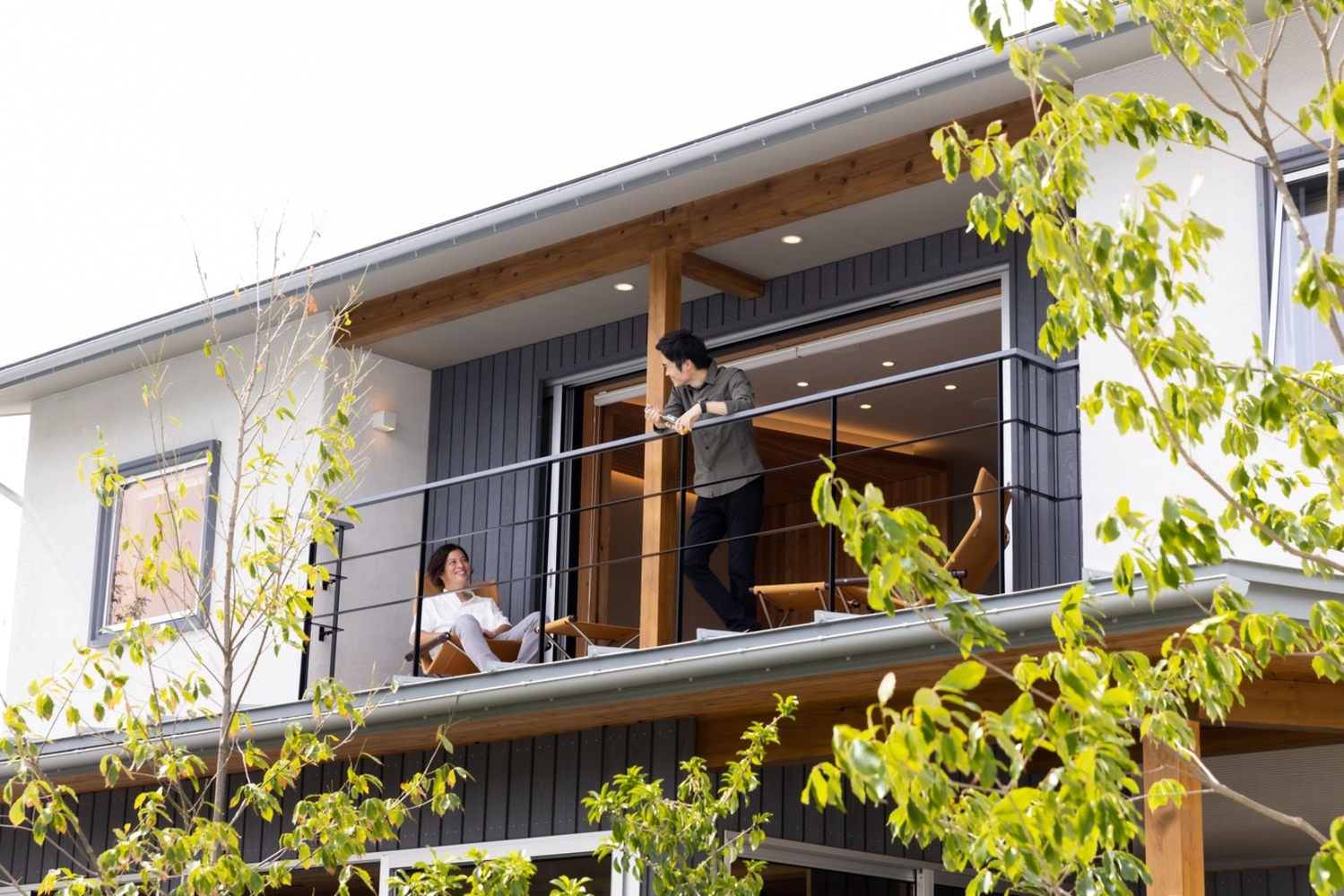西側に広がる畑の景色を取り込み、家族でゆったりと過ごせるバルコニー。