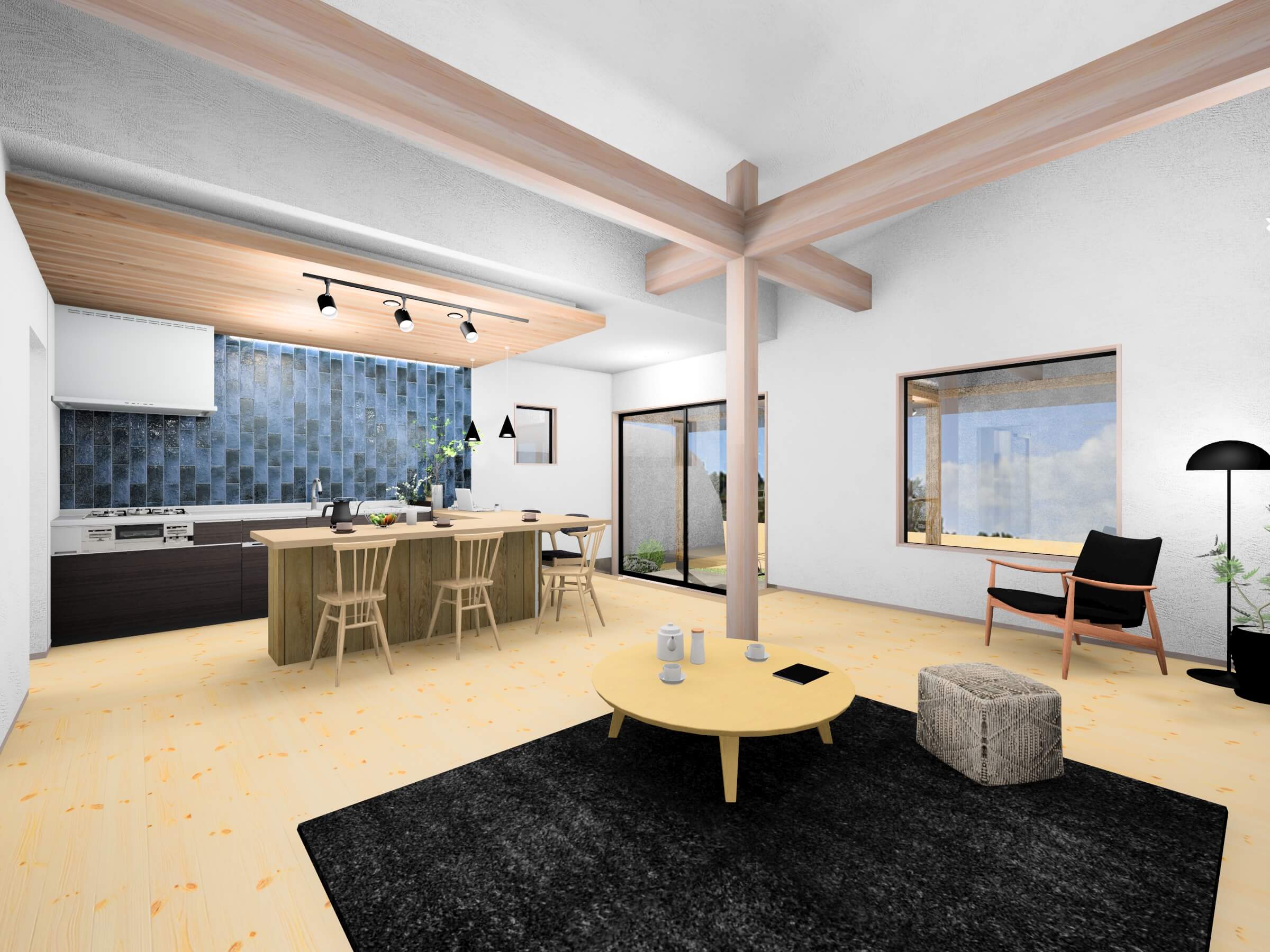 選木ツアーで選んだ柱や梁が、空間にほどよいアクセントを添えてくれます。