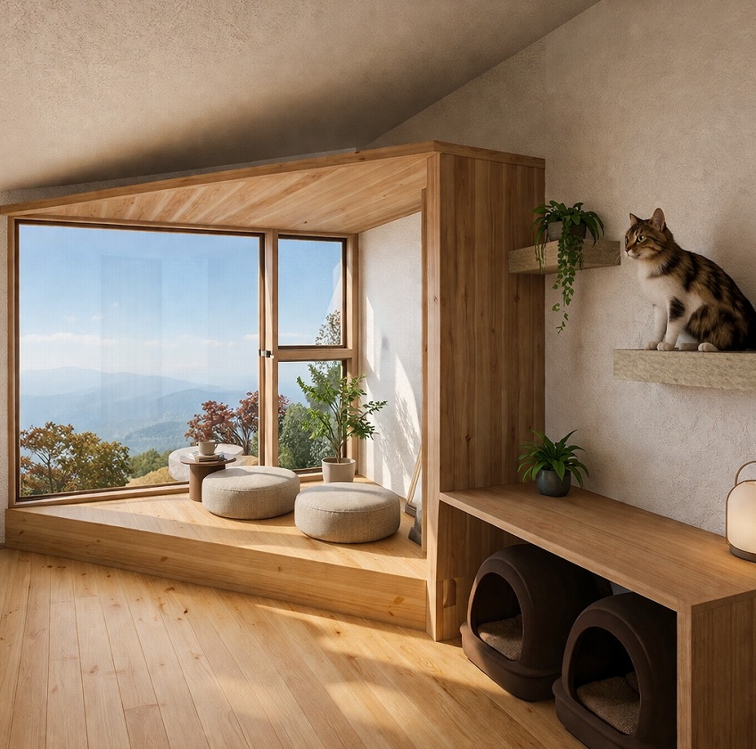 愛猫と庭の景色を眺めながら、自分だけの静かなひとときが流れます。