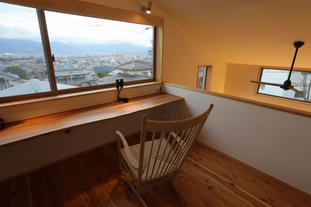 時には景色を楽しみリフレッシュして、仕事のはかどる書斎スペースに。