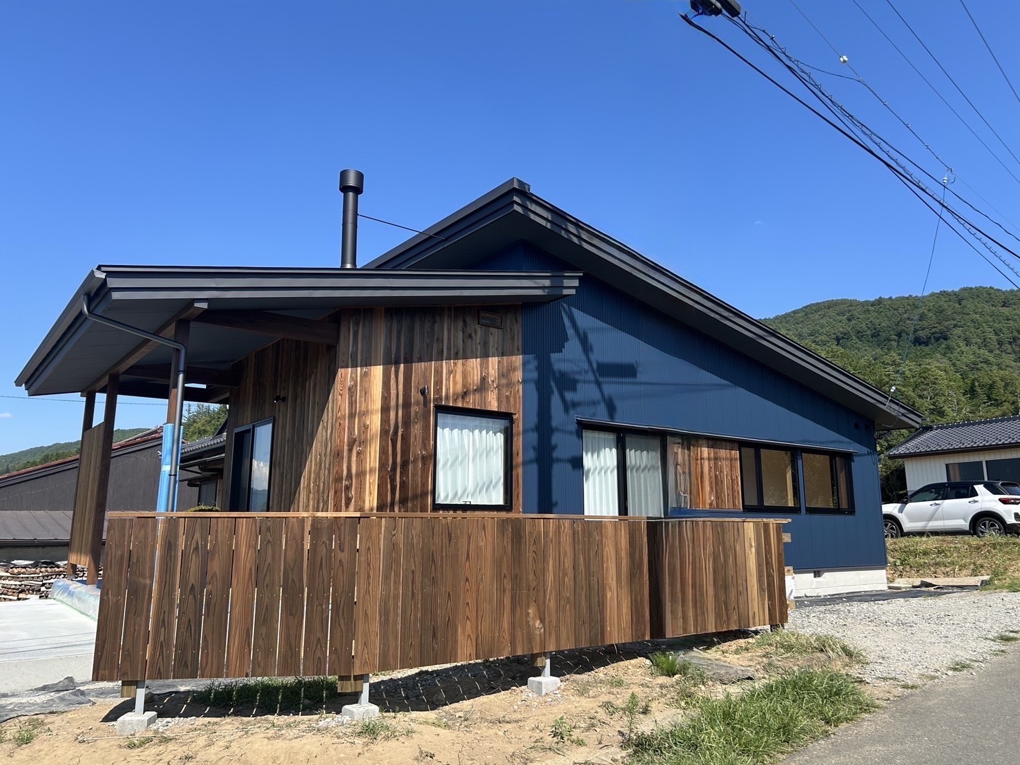 【伊那市平屋完成見学会】大きな軒の下でくつろぐ。土間サロンと外テラスのある平屋