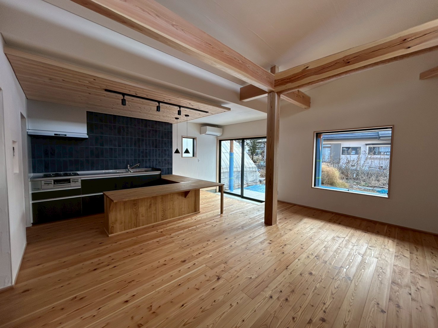 選木ツアーで選んだ柱や梁が、空間にほどよいアクセントを添えてくれます。