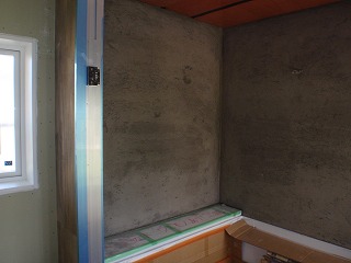 写真は、タイル張りの壁の下地モルタルを塗ったところです。