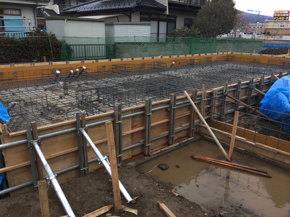 基礎の鉄筋工事が終わり、検査を行いました。週明けに土間コンクリートの施工になります。