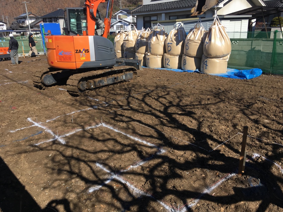 表層改良工事に取り掛かります。