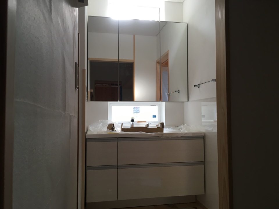 基礎の型枠も解体され、給排水設備の先行配管中です。