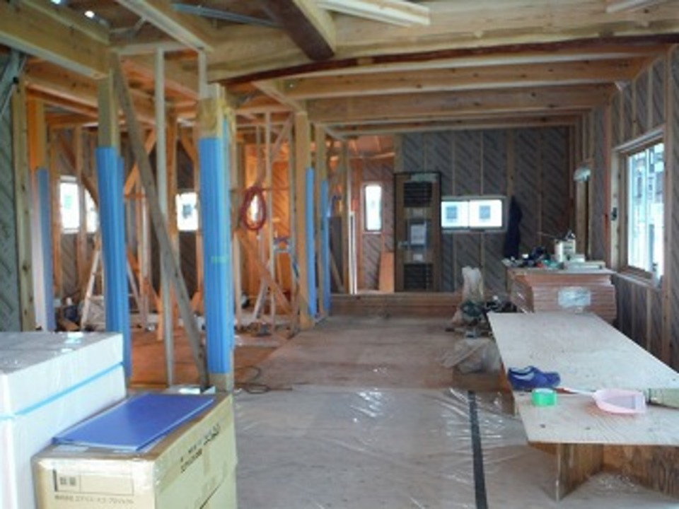完成時内部の状況です。地山の太鼓梁もとても合いすばらしい家となりました。