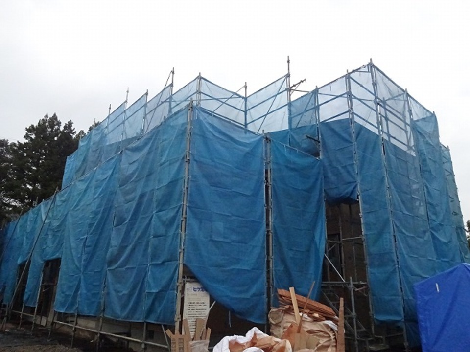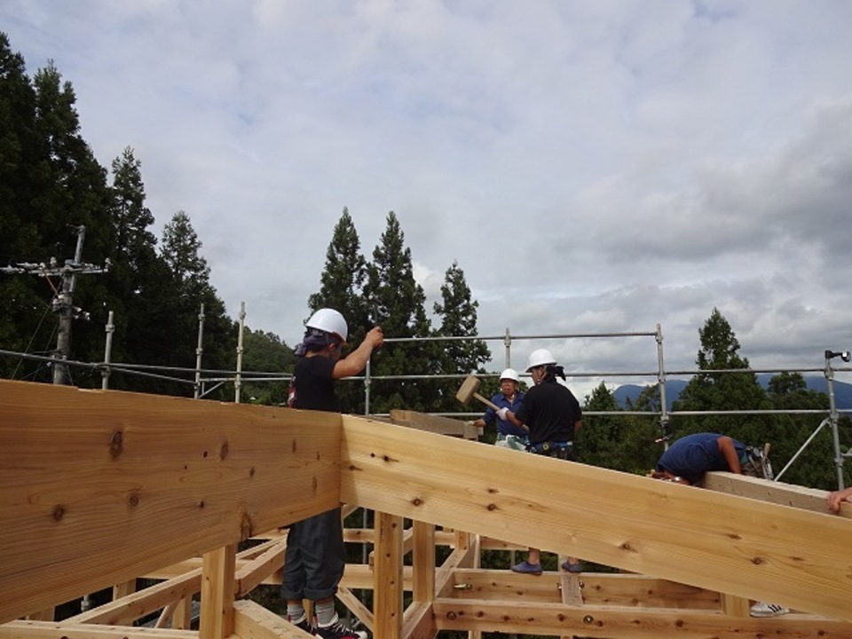 大きな家でしたが、大工さんの段取りがよく1日目で2階の屋根が出来上がりました。