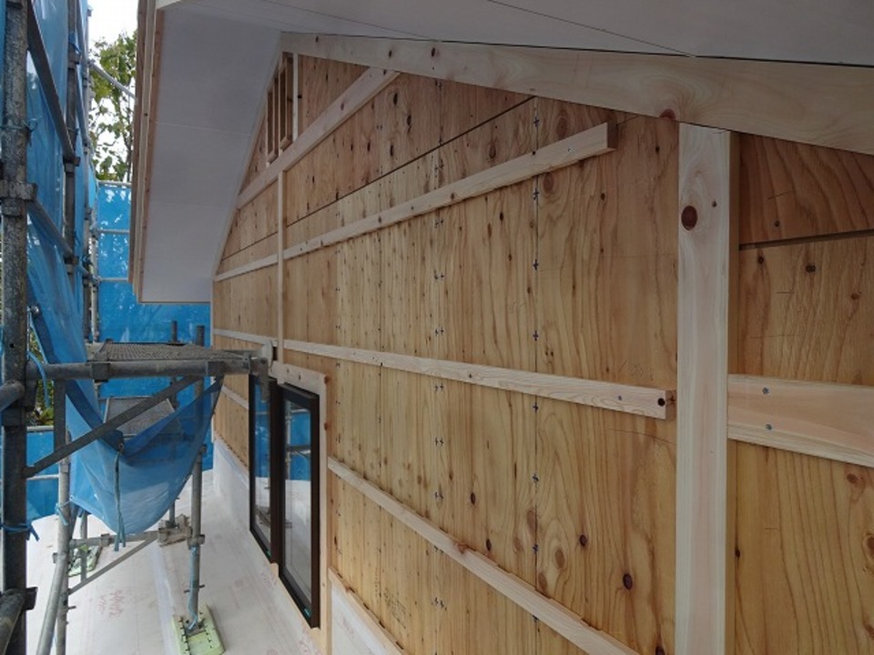 木完の立ち合い検査が終わり、左官さんの塗り工事が始まりました。