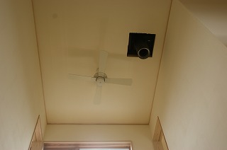 吹抜け部分にシーリングファンがつきました。とても雰囲気が良いです!