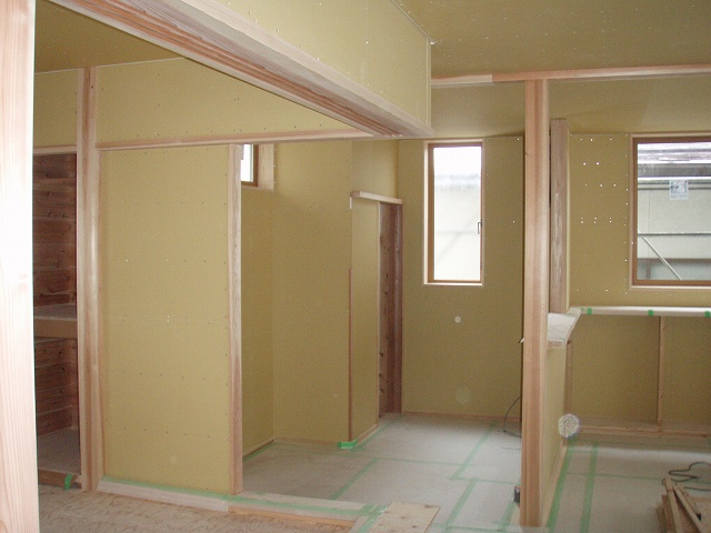 大工さんの工事は終わりました。壁の石膏ボード張りも全て完了しています。後は、キッチンの設置をすれば木工事完了です。
