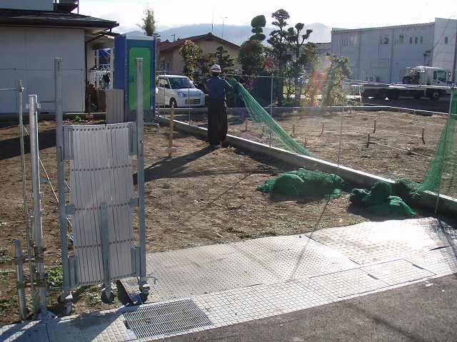 工事着工に合わせて、囲いやトイレ等の仮設資材が設置されています。