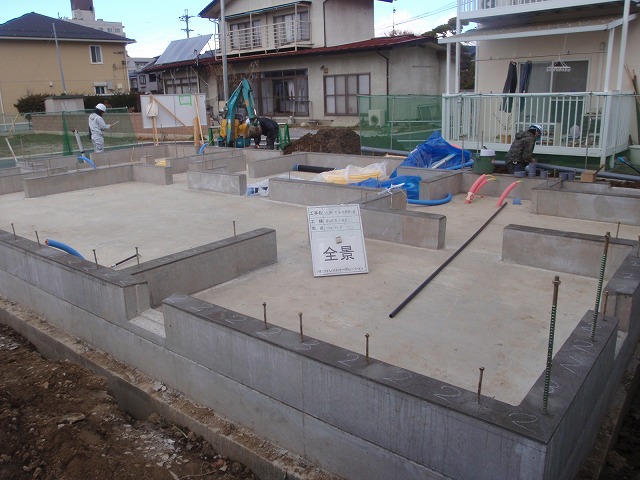 基礎完了の立会検査をしていただきました。現場では、設備配管の工事をしていました。奥様も出産を終え、現場を見ていただきました。来週から木工事です。いよいよ住宅づくり本番といった感じです。