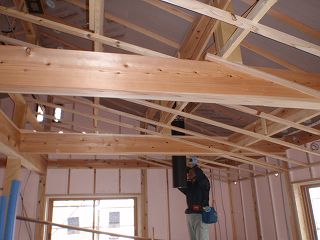 木工事が完了したので確認を行っていただきました。天気も良く吹抜けからしっかりと光が入っています。