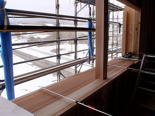 出窓を大工さんが作っています。職人さんでなくては作れない納め方を行っていました。