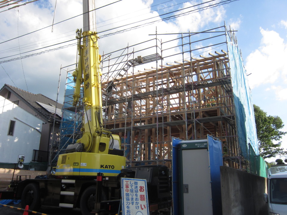 午後3時頃、2階の梁が組まれ、いよいよ棟まで上がりました。