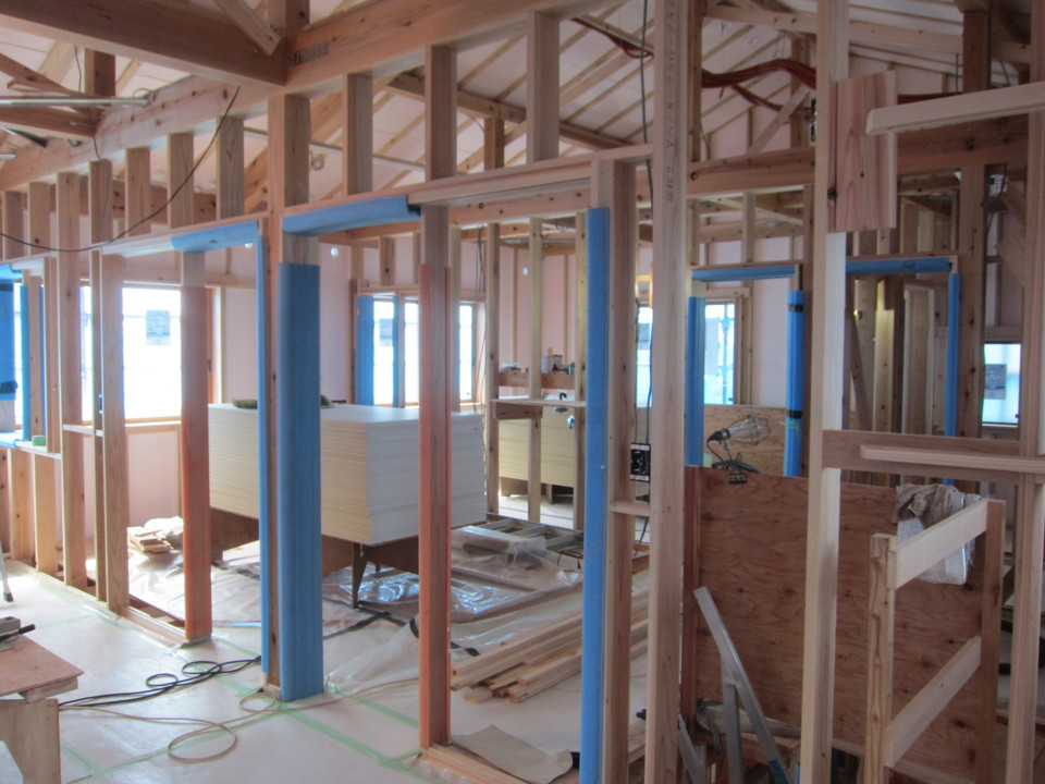 屋根工事が完了した後、壁工事に取り掛かりました。