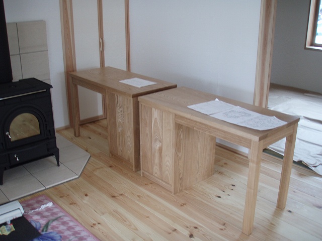 家具屋さんに造っていただいた、学習机が現場に届いていました。