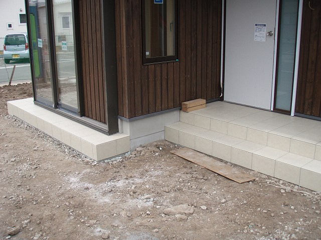 玄関とサロンのタイル張りが終わりました。左官工事は完了です。